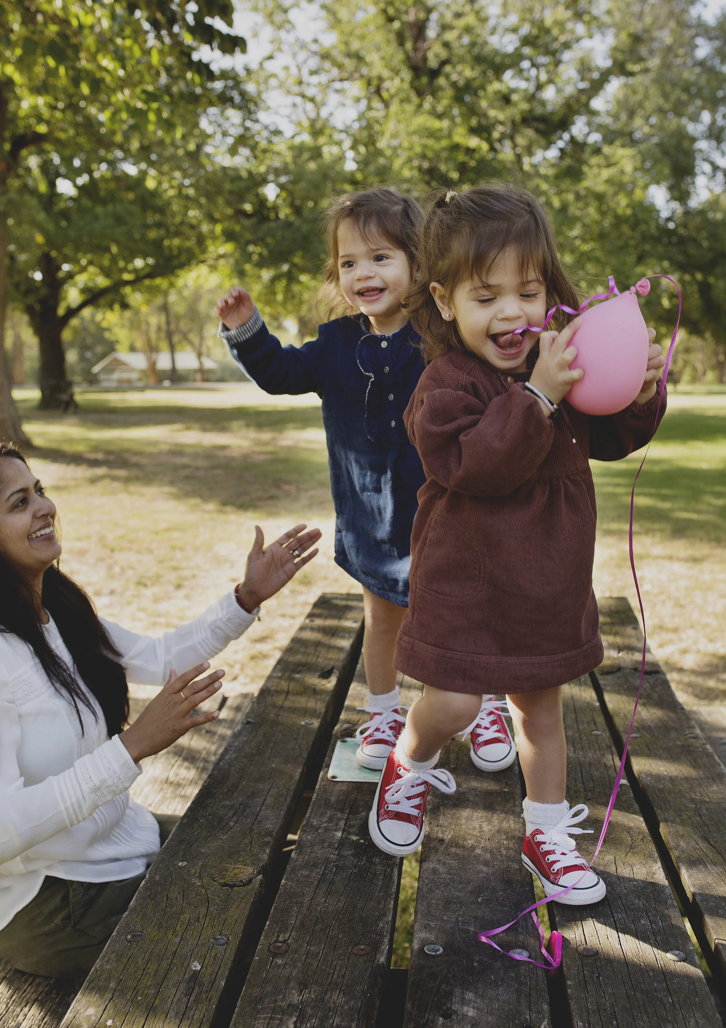 What a perfect afternoon to spend at the park with this lovely family visiting from the States. How gorgeous are these 21 month old twin girls? So much fun, playing with balloons, blowing bubbles and lot's of snuggles with their parents and grandparents. Thank you for letting me capture this special time for you.