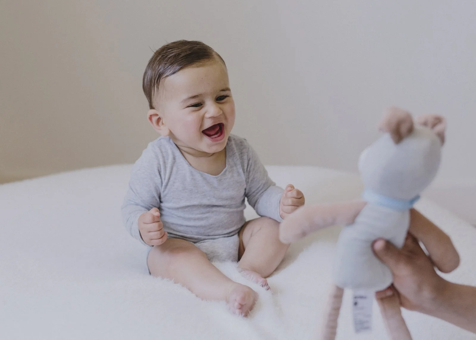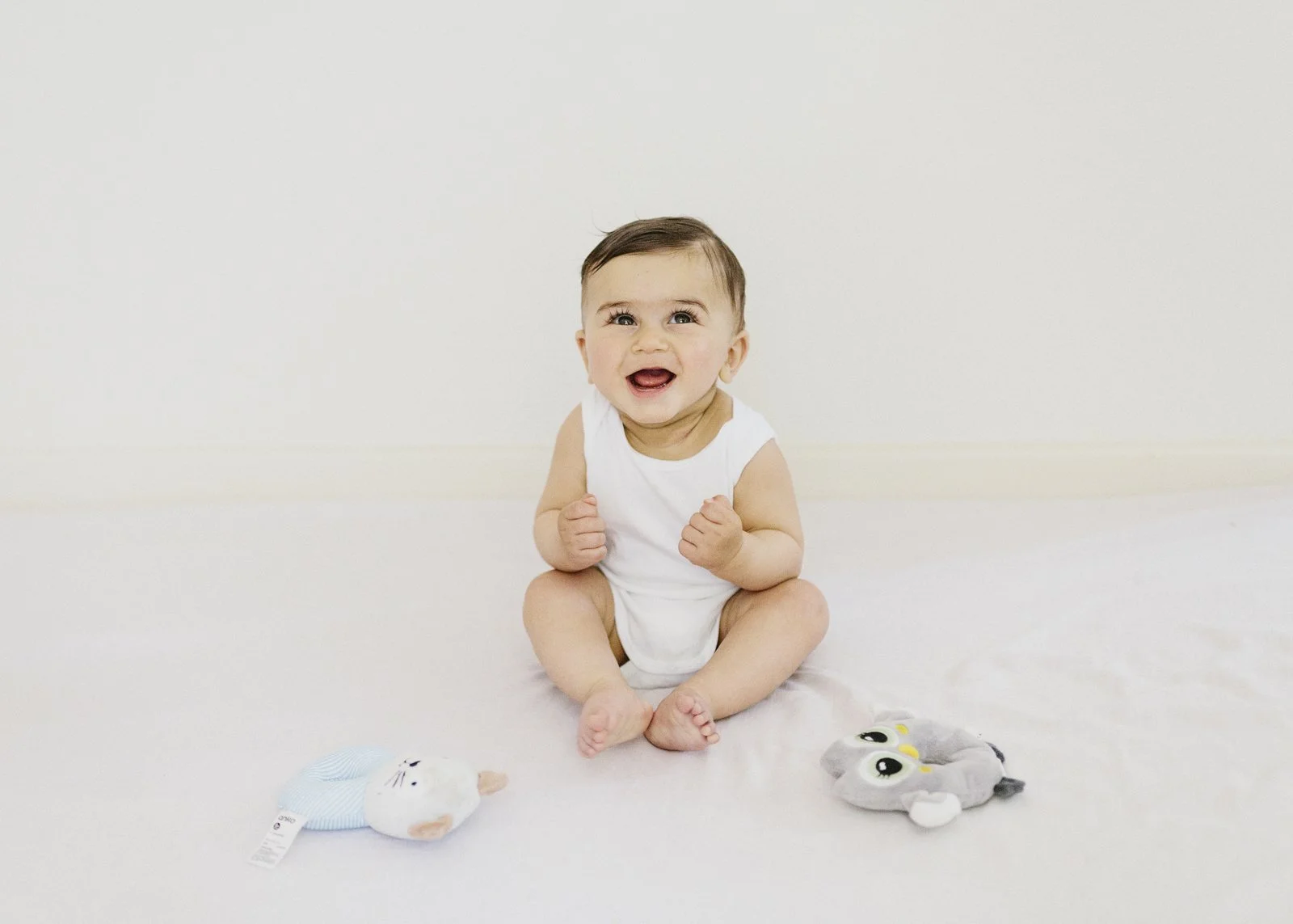 A lot of clients decide to have their baby photos taken at an older age. An age where their baby is more aware and has lots of personality. They’ll be lots of babbling, clapping hands, crawling and pulling themselves up to stand. They’ll will now be forming strong relationships to their favourite people, toys and books. A normal part of this age’s development will be separation anxiety, very cautious of people they don’t really know. They will now have maturing emotions, they can express fear and also read and respond to your facial expressions.
