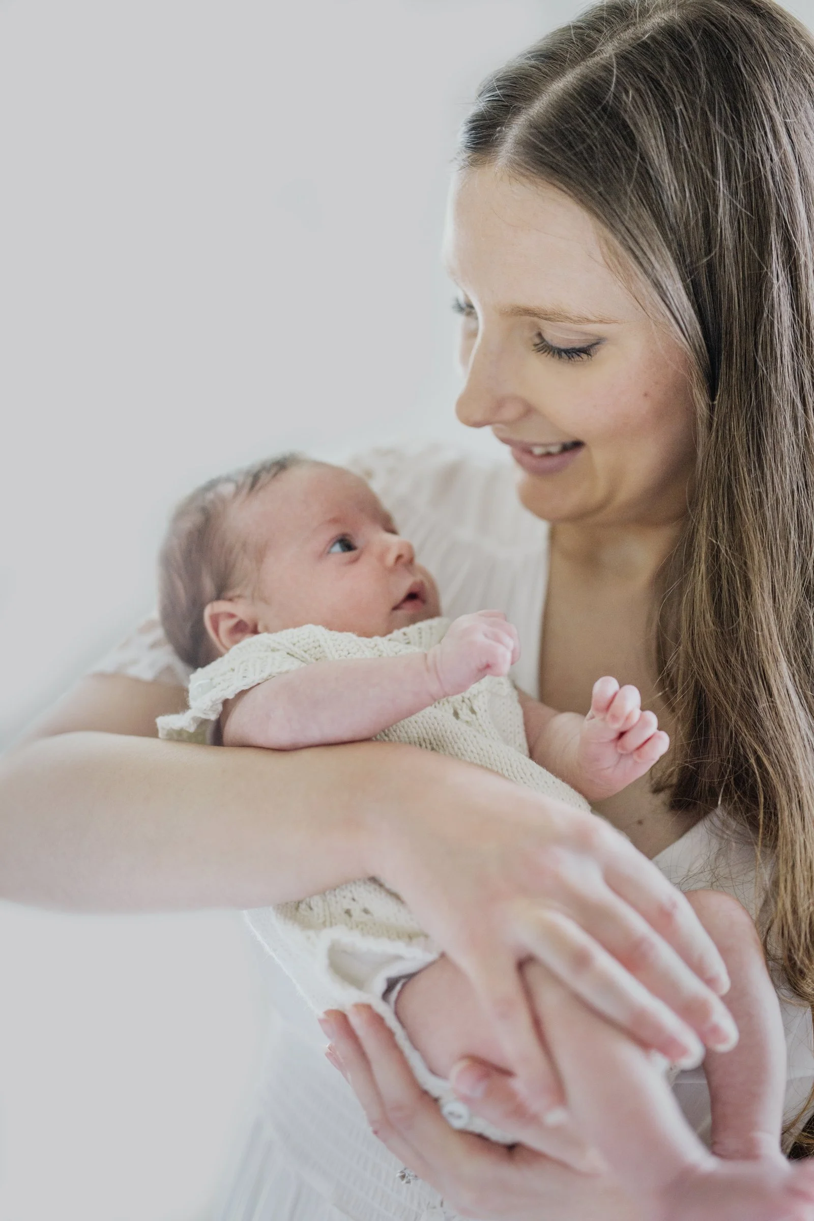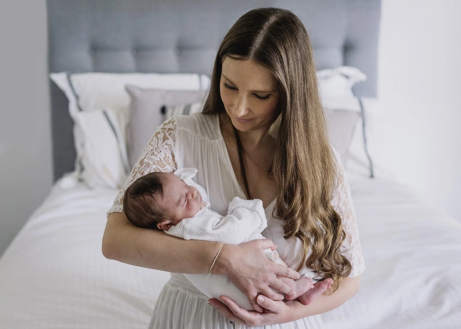 Once I receive your booking, I’ll send you my Welcome Booklet that will answer so many questions you might have and will also explain how to prepare for your newborn session. I will give you plenty of time to care for your baby’s needs during the photo shoot with no time limit as every baby is different and might require more settling. I only lightly swaddle your baby, do not pose and will always handle your newborn baby in a safe and delicate manner. It doesn’t matter if your baby is asleep or awake as long as they’re happy and content. You’d describe my style as natural photography…..let them move and stretch as they want and not try to maneuver them into unnatural poses that babies don’t do. All I will do is direct you into flattering poses while you hold and snuggle your baby in your arms.
